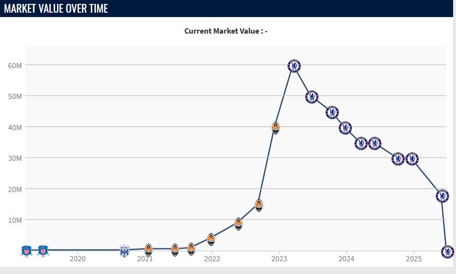 На этой отметке она продержалась до конца сезона-2024/2025. Сейчас именно так и оценивают игрока несколько известных порталов, а Transfermarkt после последнего обновления решил вообще убрать ориентировочную стоимость в профиле украинского вингера.