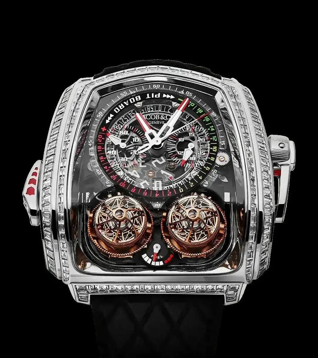 - Часы Jacob & Co Twin Turbo Furious Baguette, имеющие двойной турбийон и децимальный репетир, выпущены в ограниченной серии из 18 единиц.