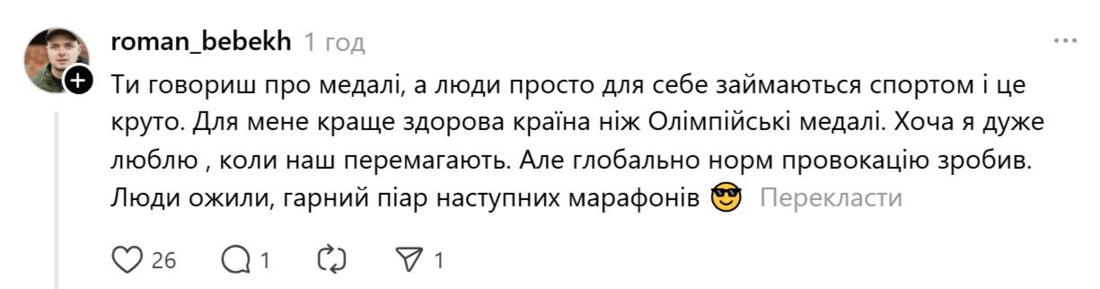 Виталий в сети объяснил свою позицию относительно массового бега. Он отметил, что для него важны результаты Украины на международной арене именно в профессиональном спорте.