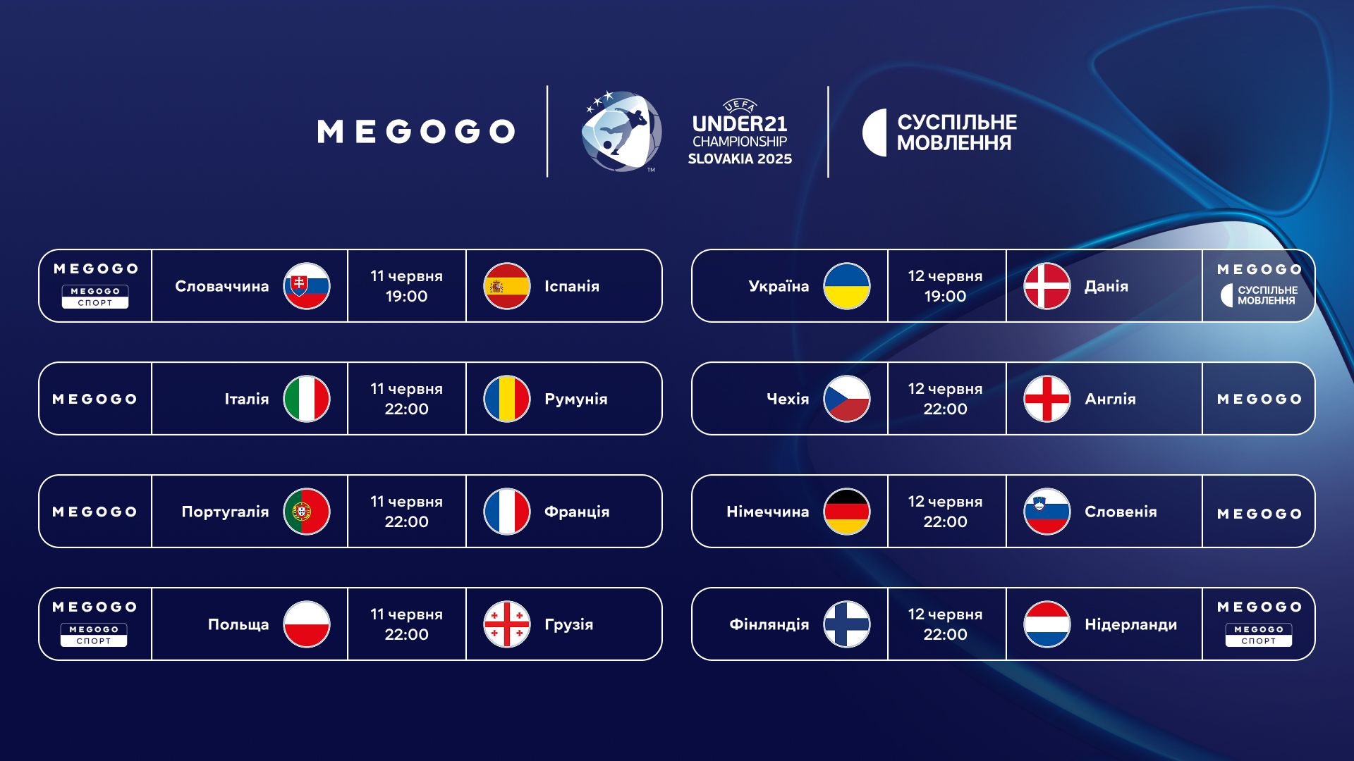Кроме этого, Евро-2025 будет транслировать Суспільне. Там будут показывать все матчи молодежной сборной Украины на групповом этапе, а также два избранных четвертьфинала (один из них с участием сборной Украины, если пройдет), оба полуфинала и финал.