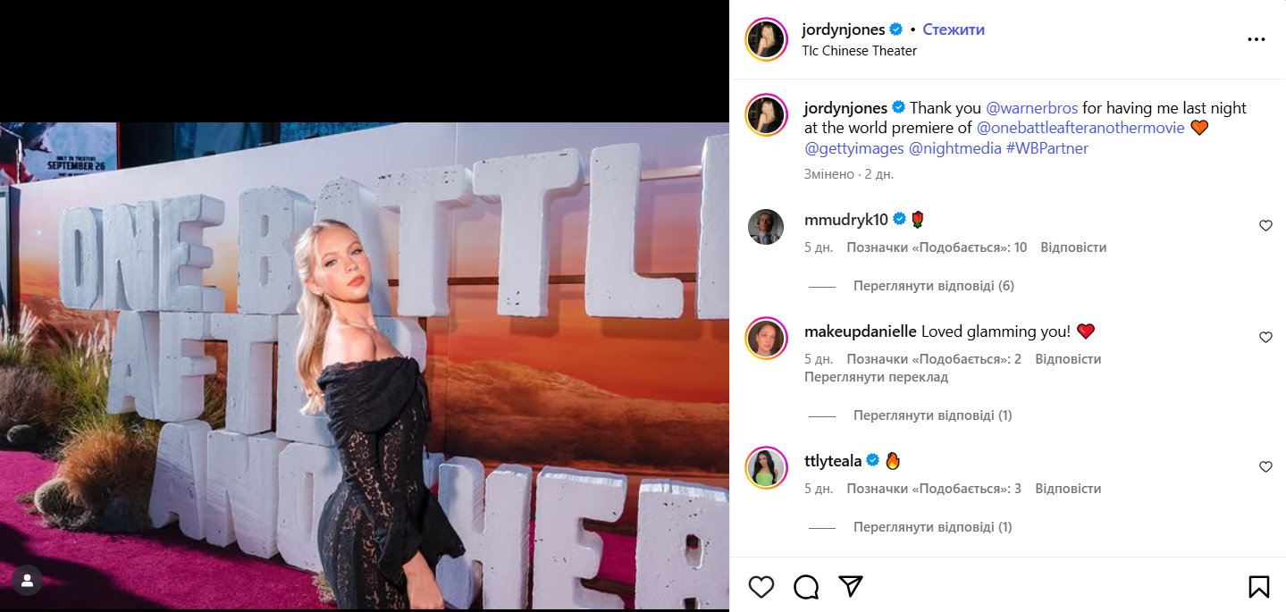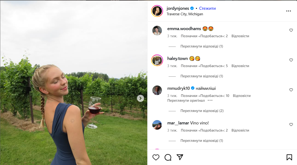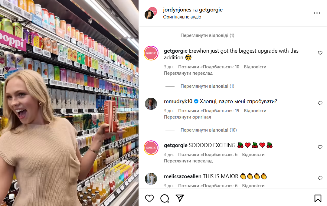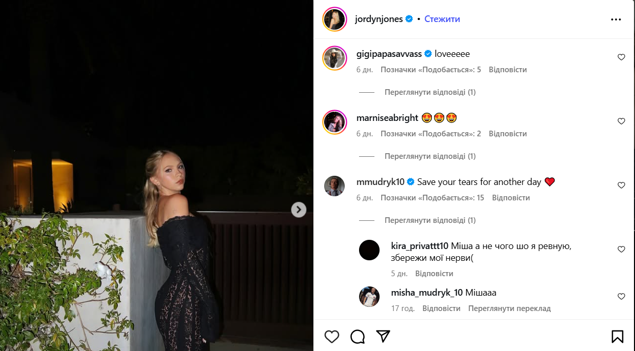 Комментарии Мудрика под публикациями Джоржин Джонс / скриншоты из инстаграма