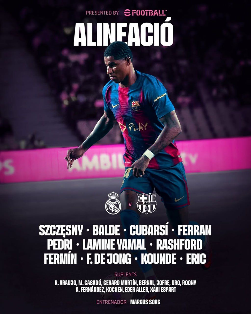 Красная карточка для Педри. Хавбек получил два "горчичника" и оставил свою команду в меньшинстве. Мартин заменил Бальде. Судья компенсировал 9 минут. Мбаппе и Беллингем уступают место на поле Себальосу и Гарсии. Барджи заменил Кубарси. Первые замены от каталонцев. Араухо и Касадо заменили Гарсию и Торреса. Родриго и Карвахаль вышли вместо Винисиуса и Вальверде. Первая замена у Реала. Браим Диас вышел вместо Арды Гюлера. СЕЙВ!!! Щенсный отбивает пенальти от Мбаппе и оставляет Барселону в игре. Пенальти! Эрик Гарсия сыграл рукой в попытке остановить прорыв Беллингема вдоль лицевой линии. Судья добавил шесть минут. ГОООООЛ!!! Реал снова впереди! Винисиус прекрасно прорвался по флангу и навесил на Милитао. Бразилец сбросил на Беллингема, которому достаточно было не промахнуться за пару метров. 2:1 Видео гола: ГОООООЛ. Барселона сравнивает счет. Рэшфорд прорвался в штрафную площадку Реала и выдал ассист на Лопеса. Фермин без проблем поразил ворота Куртуа. 1:1 Видео гола: ГООООЛ!!! Таки забивает Мбаппе! Беллингем вырезал суперпас на Килиана, который вышел один на один со Щенсным и пробил мимо поляка. 1:0 Видео гола: Мбаппе забивает суперударом издали после потери мяча от Фермина Лопеса. Однако VAR отменил гол, ведь француз был в минимальном офсайде.Конец матча