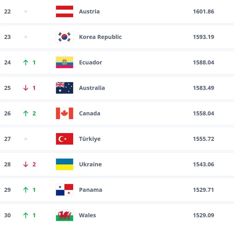 Сейчас Украина занимает 28 место, пропустив вперед Канаду и Турцию. Интересно, что это самая низкая позиция "сине-желтых" во времена руководства Сергея Реброва.