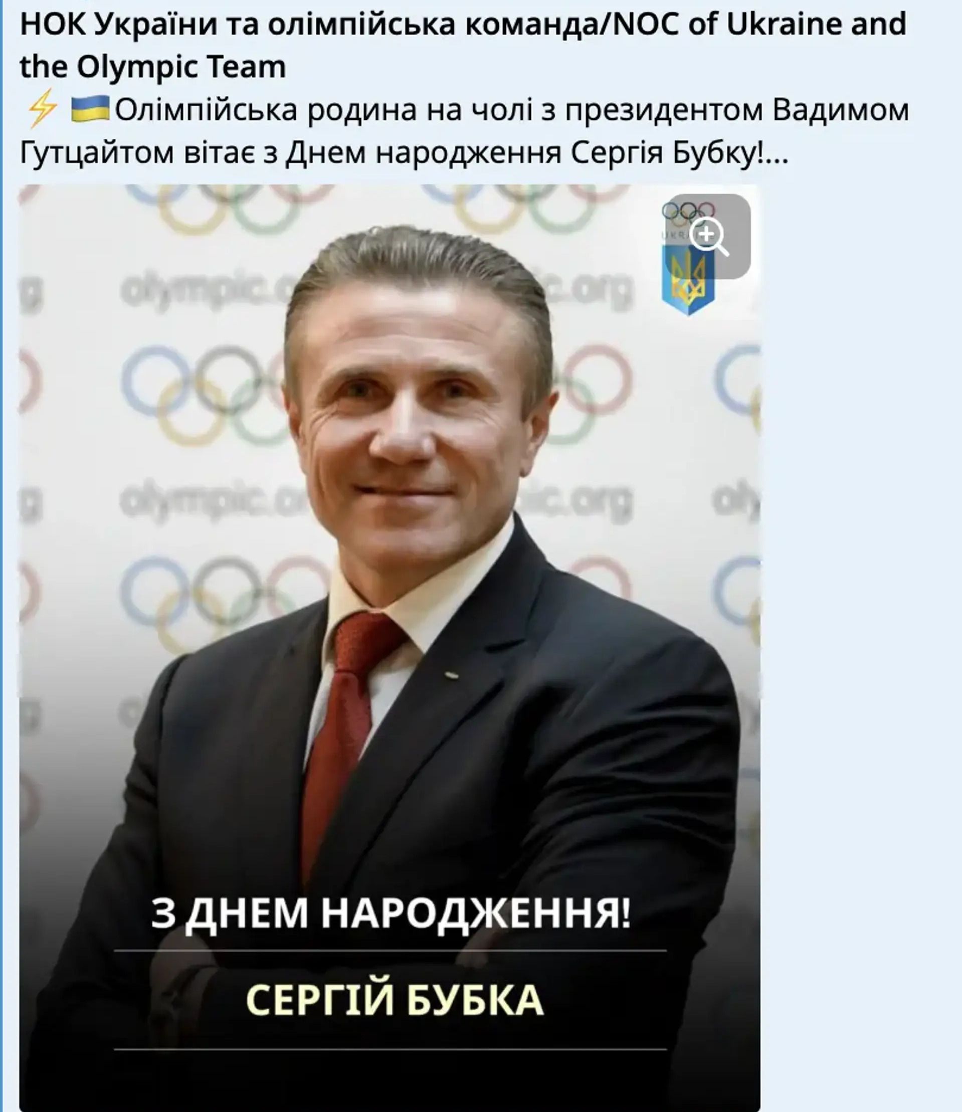 НОК Украины поздравил Бубку с днем рождения / скриншот из соцсетей НОК Украины
