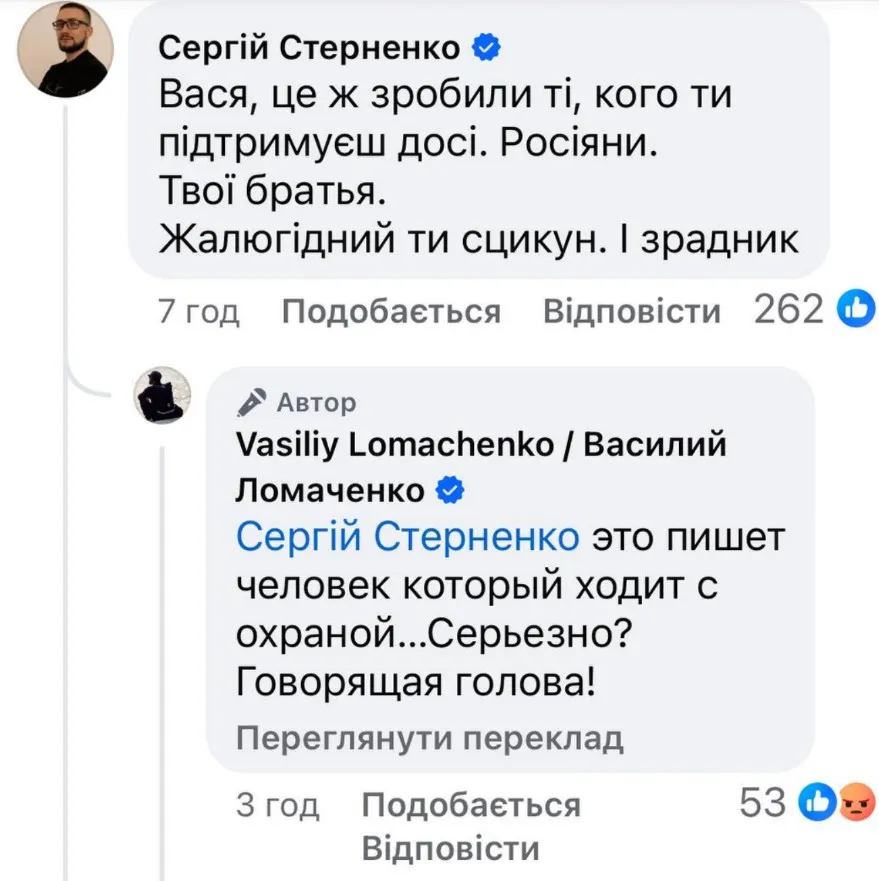 Куда более горячим оказался спор Ломаченко с другим блогером и волонтером Сергеем Стерненко. Активист также является одесситом, поэтому он более резко отреагировал на пост Василия.