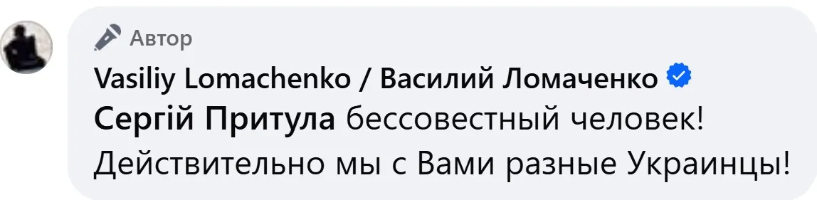 Василий решил не игнорировать сообщение Притулы и обозвал его "бессовестным человеком".