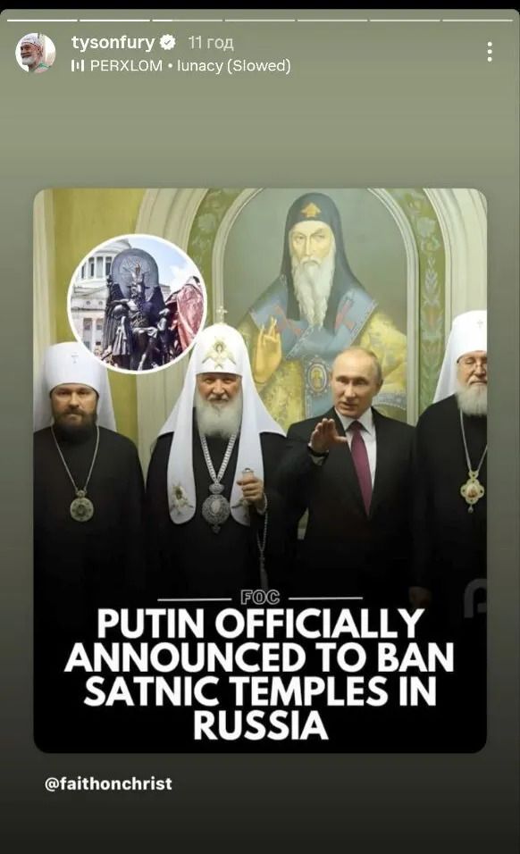 Фьюри сделал репост новости о Путине / Скриншот из инстаграма боксера