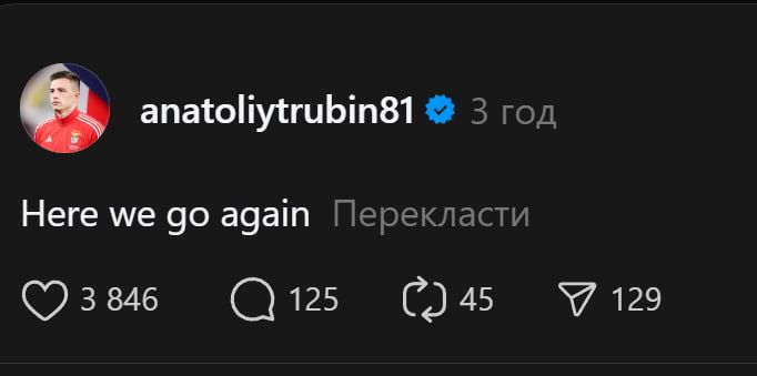 - Анатолий Трубин отреагировал на повторную встречу с Реалом, написав "Ну вот опять" в сети Threads.