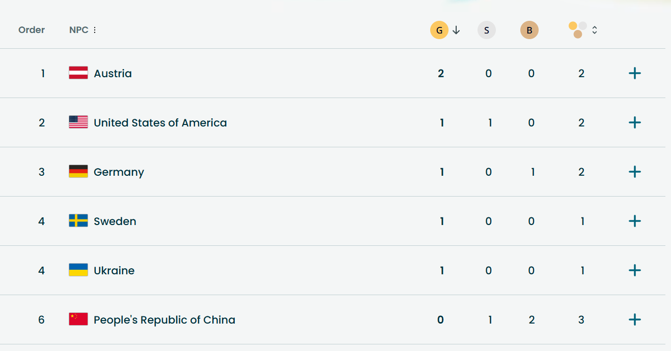 Как пишет сайт Паралимпиады, кроме нашей команды, золотые награды успели завоевать представители Соединенных Штатов, Германии и Швеции. А у Австрии уже два золота.