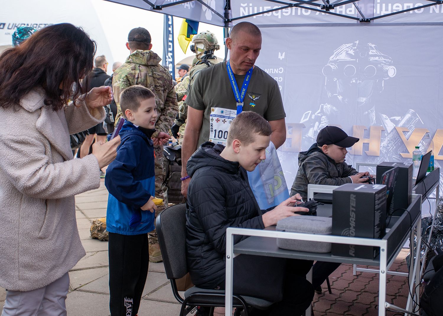Не меньшей популярностью пользовалась знаменитый дрон "Баба Яга", на счету которой сотни успешных боевых вылетов. Рядом были выставлены FPV-дроны разных размеров, дроны наблюдения, станция для их управления. А дальше – самое интересное! Пройдя экскурс в мир военных дронов от бойцов ССО, каждый желающий имел возможность сесть за симулятор и собственноручно выполнить задание различной сложности – пролететь заданным ландшафтом или попасть во вражеский танк или БТР.