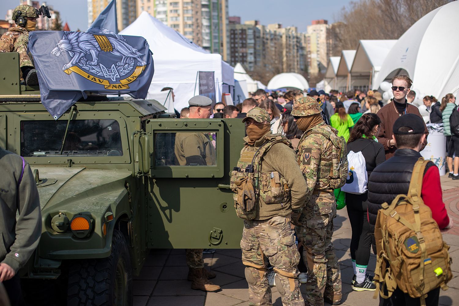Возле локации центра ССО на набережной с самого утра было немало киевлян и гостей столицы. Одни интересовались у инструкторов выставленными техникой и оборудованием, другие – просто благодарили за службу.