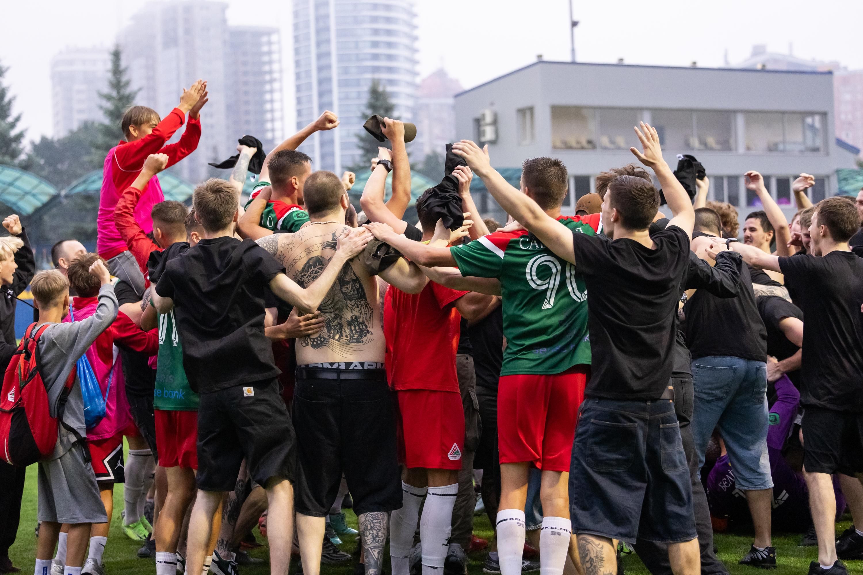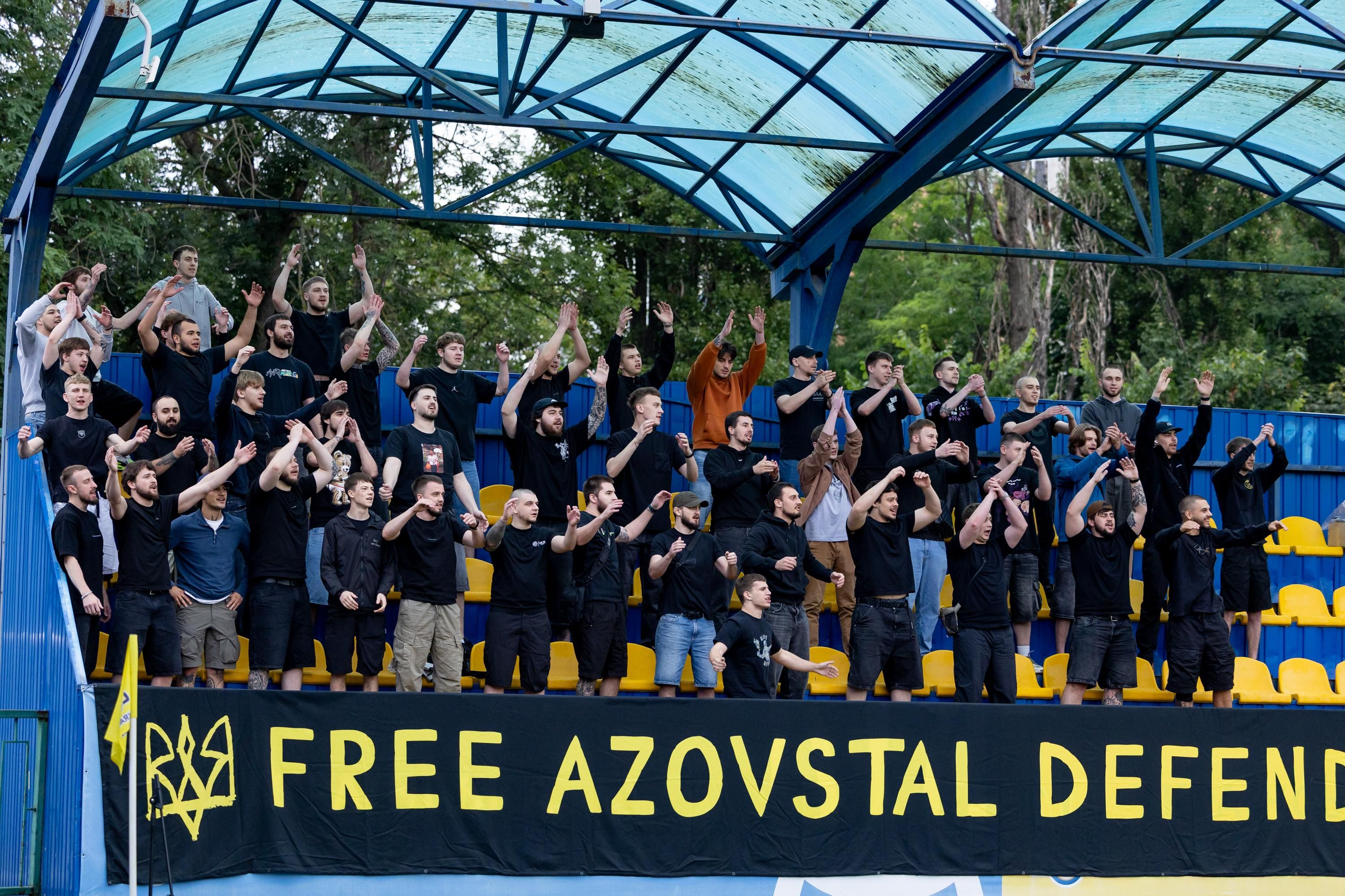 Во-вторых, наши матчи становятся платформой для привлечения внимания к теме освобождения украинских военнопленных. Сегодня в российской неволе находится около 6 тысяч украинских защитников и защитниц. Среди них более 800 "азовцев". На домашних играх юные воспитанники академии Локо выводят футболистов на поле в футболках с надписью "FREE AZOVSTAL DEFENDERS", а бойцы бригады выполняют первые символические удары по мячу.