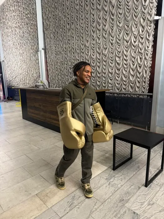 Олимпийский чемпион опубликовал фото, где он одет в огромные боксерские перчатки золотистого цвета. Подпись под фотографией метко дополнила композицию.