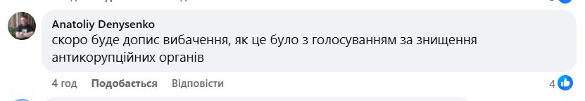 - "Скоро будет сообщение извинения, как это было с голосованием за уничтожение антикоррупционных органов".