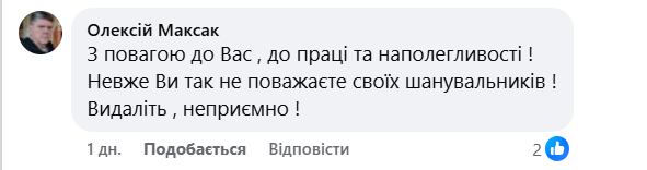 - "С уважением к Вам, к труду и настойчивости! Неужели Вы так не уважаете своих поклонников! Удалите, неприятно!".
