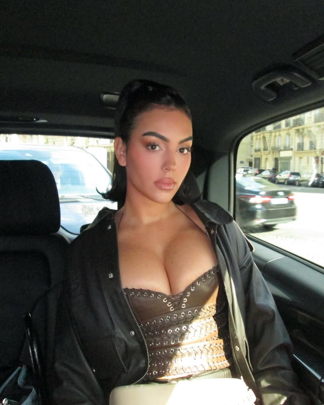 Джорджина Родригес предстала перед камерой в стильной кожаной курточке и корсете. Главной деталью образа возлюбленной Криштиану Роналду стал глубокий декольте.