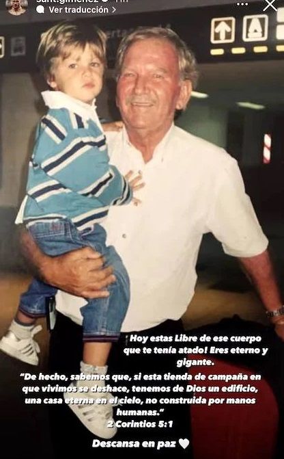 На жаль, дідусь нападника вже не побачив дубль онука у ворота Болоньї. Восени 2023-го дідусь Хіменеса відійшов у кращий світ. Втрату футболіст пережив напередодні свого дебюту за Феєнорд, за який тоді Сантьяго ще виступав, у Лізі чемпіонів проти шотландського Селтіка.