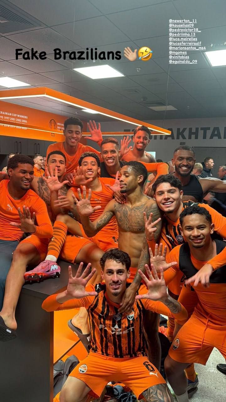 До слова, після зустрічі бразильські футболісти Шахтаря вирішили потролити Попова. В інстаграмі Ізакі Сілви з'явилось їх спільне фото з роздягальні, яке вони підписали фразою "Фейкові бразильці".