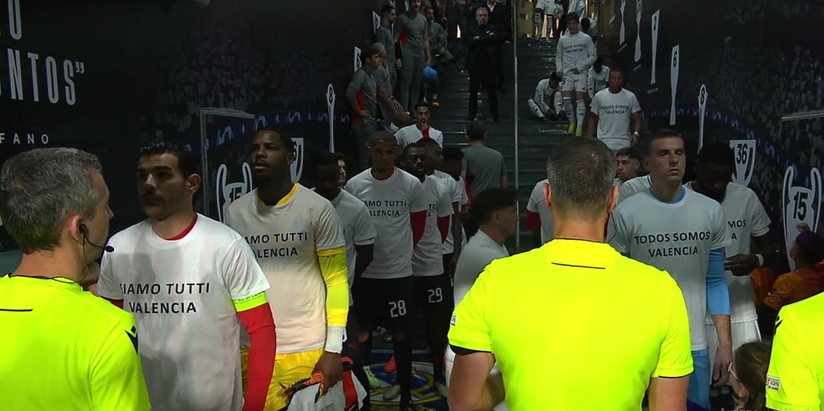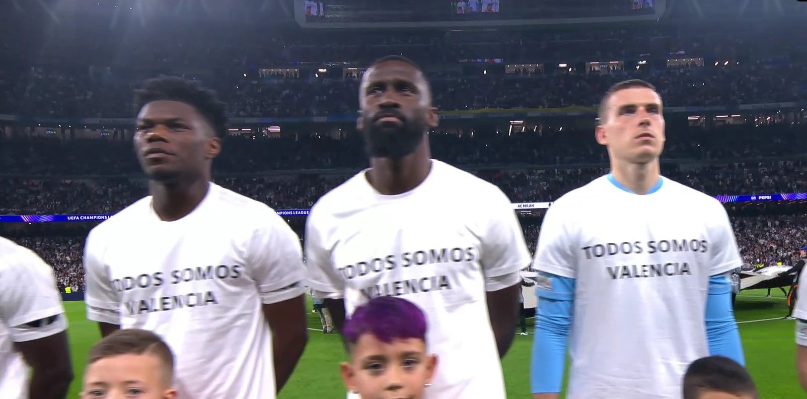 Футболісти Реала та Мілана вийшли на футбольне поле "Сантьяго Бернабеу" у спеціальних футболках. А сам матч 4-го туру Ліги чемпіонів-2024/2025 розпочався із хвилини мовчання за загиблими та постраждали після жахливого стихійного лиха, передає 24 Канал.