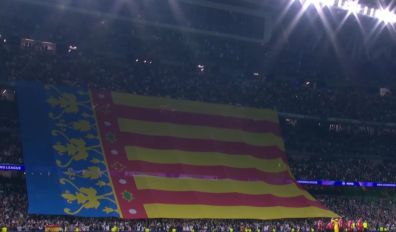 На центральних трибунах стадіону у Мадриді уболівальники "Королівського клубу" розгорнули величезний прапор регіону Валенсії. А на фанатській трибуні Реала з'явився великий плакат із написом: "Ми усі – Валенсія". Також на секторах можна було побачити чималу кількість клубних роз "кажанів".