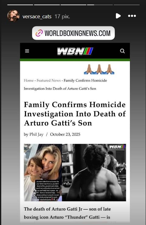 Двоюрідна сестра боксера Версасі Гатті поширила дану інформацію на своїй сторінці в інстаграмі. Родичка Артуро-молодшого звернулась до покійного брата.