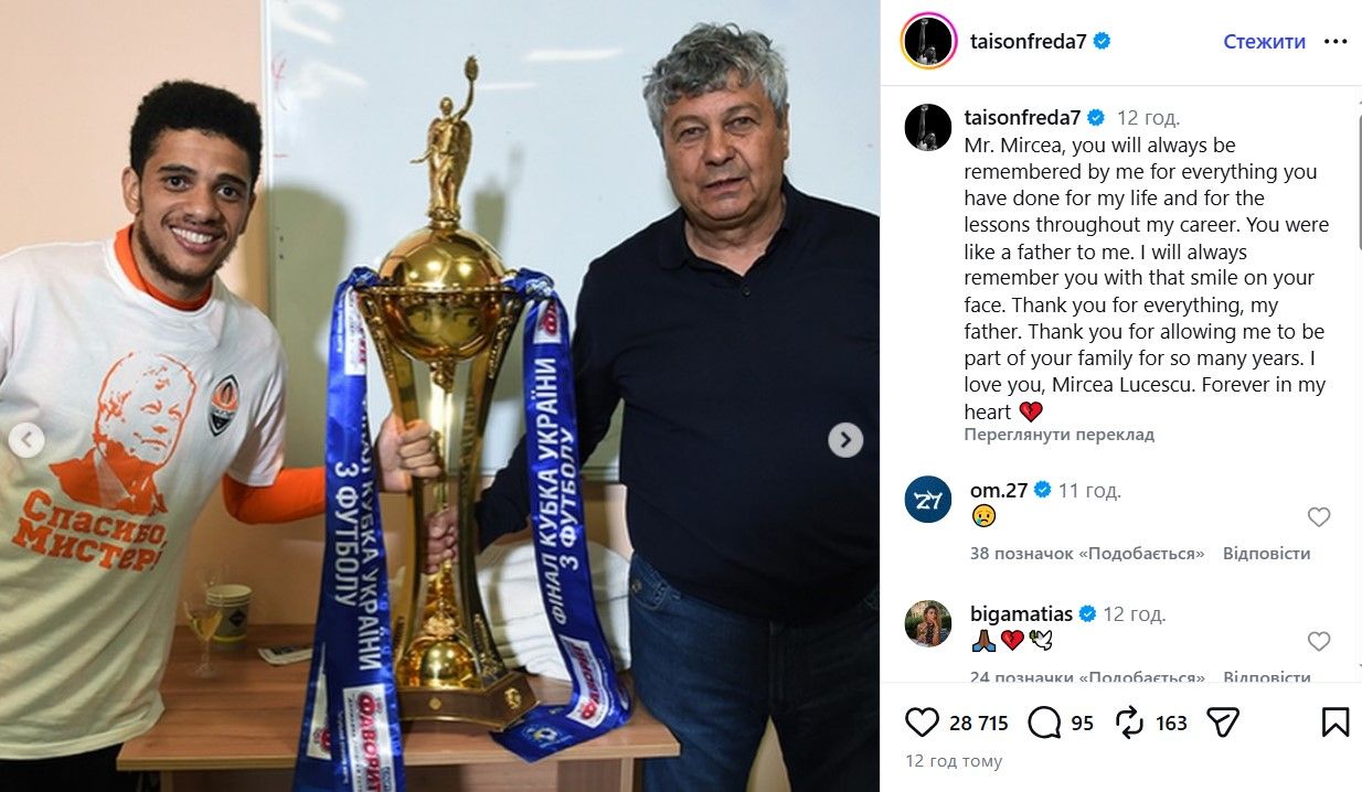 Особливо культовою персоною румун є для "гірників", яких він очолював 12 років. Тож чимало колишніх та чинних гравців Шахтаря висловили свою скорботу через відхід Луческу.