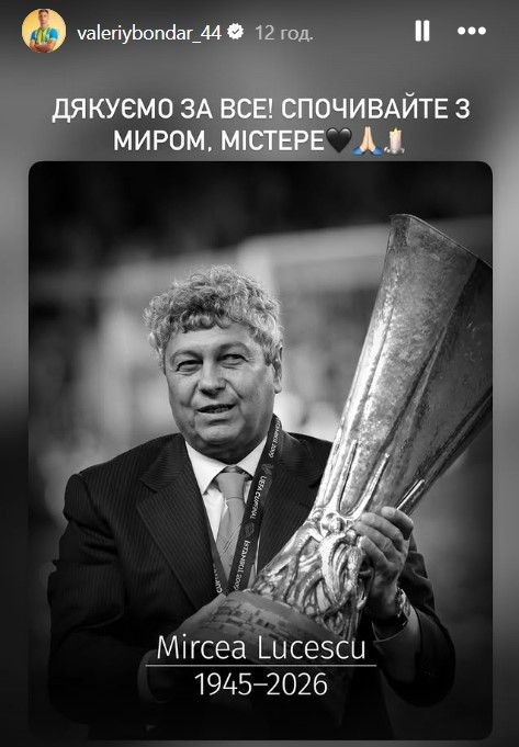 - Валерій Бондар: "Дякуємо за все. Спочивайте з миром, Містере".