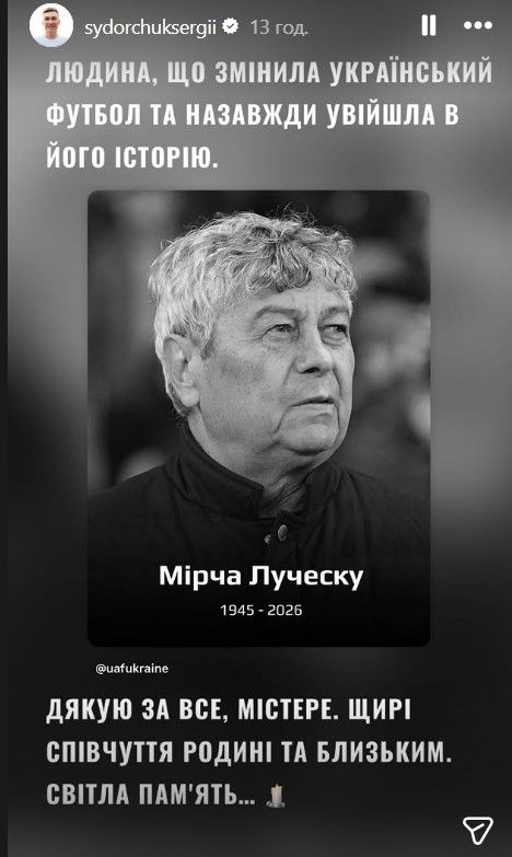 Європейський і світовий футбол втратили виняткову постать, чий вплив, масштаб і спадщина збережуться для наступних поколінь. Мірча Луческу був одним із справжніх унікалів цієї гри, людиною з рідкісним футбольним інтелектом, гідністю та пристрастю, чий внесок у спорт важко передати словами. Його присутність формувала команди, надихала гравців та залишила помітний слід у футболі,
