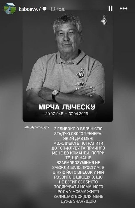 - Владислав Кабаєв: "З глибокою вдячністю згадую свого тренера, який дав мені можливість потрапити до топ-клубу та прийняв мене до команди. Попри те, що наше взаєморозуміння не завжди було простим, я ціную його внесок у мій розвиток. Шкодую, що не встиг особисто подякувати йому. Його роль у моєму житті залишається для мене дуже значущою".