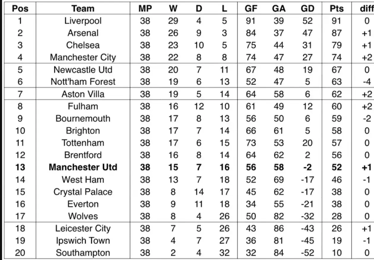 Для визначення остаточної турнірної таблиці АПЛ сезону-2024/2025 суперкомп'ютер проаналізував кожен матч чемпіонату 10 тисяч разів. Манчестер Юнайтед може опинитись поза єврокубками.