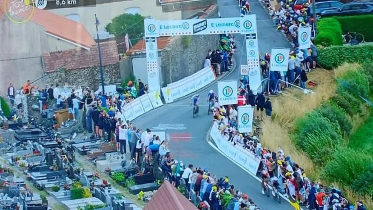 Вони використали кладовище, як трибуну, звідки стежили за перегонами. Ця ділянка траси розташована трішки менше, ніж за дев'ять кілометрів до фінішу другого етапу в містечку Булонь-сюр-Мер.