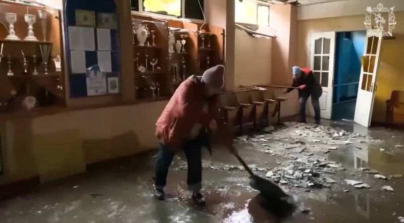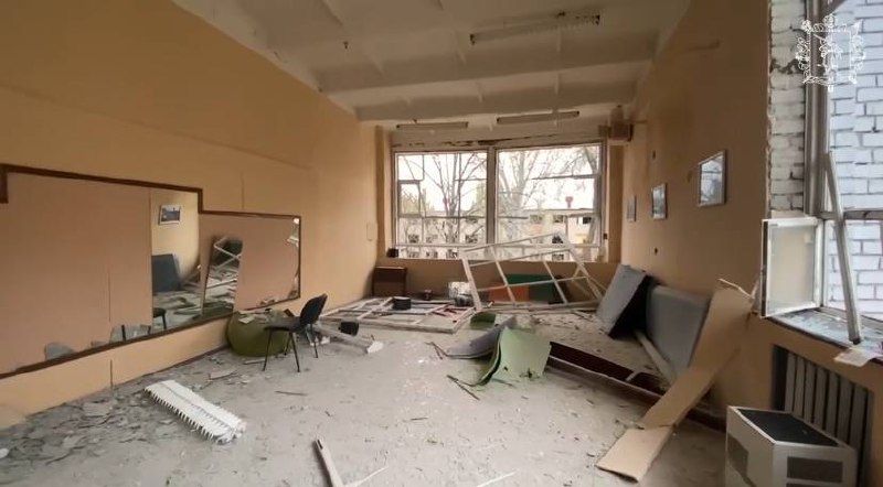 Внаслідок ударної хвилі були вибиті вікна, пошкоджені тренувальні зали.
