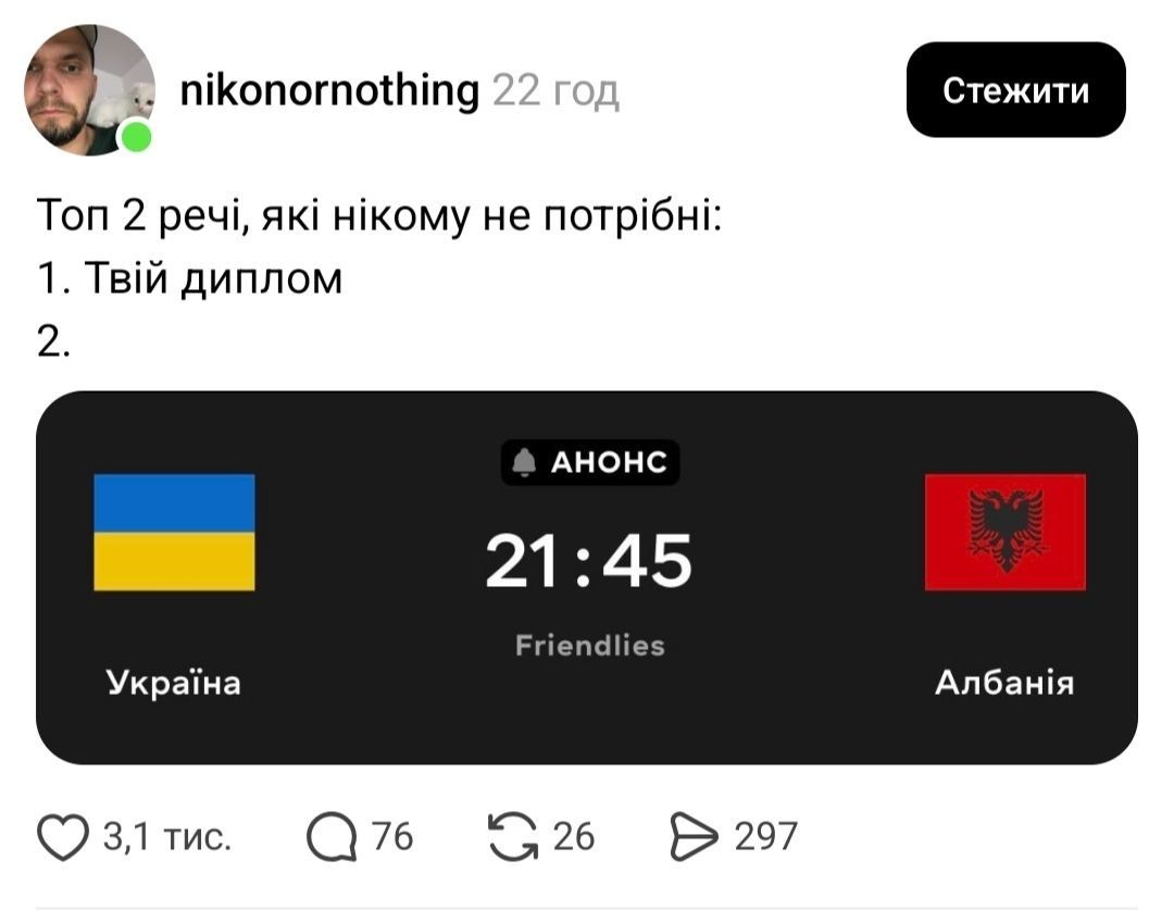 Реакції перед матчем збірної України проти Албанії / Фото Threads