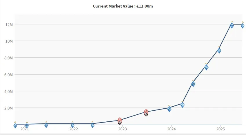 Натомість до кінця червня 2025-го ціна на Ярмолюка складала на порталі Transfermarkt 12 мільйонів євро. Як бачимо, Владислав подорожчав більше, аніж український легіонер "бджіл".