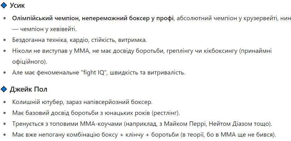 Порівняння Усика та Пола / Скриншот із ChatGPT