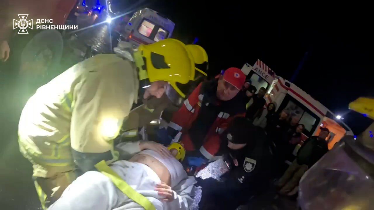 ДТП сталася на автодорозі М-06 "Київ – Чоп" поблизу села Тараканів на Рівненщині. Рятувальники показали моторошні кадри з місця подій, повідомляє 24 канал із посиланням на ДСНС.