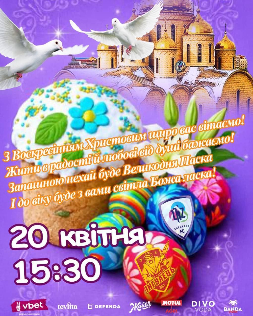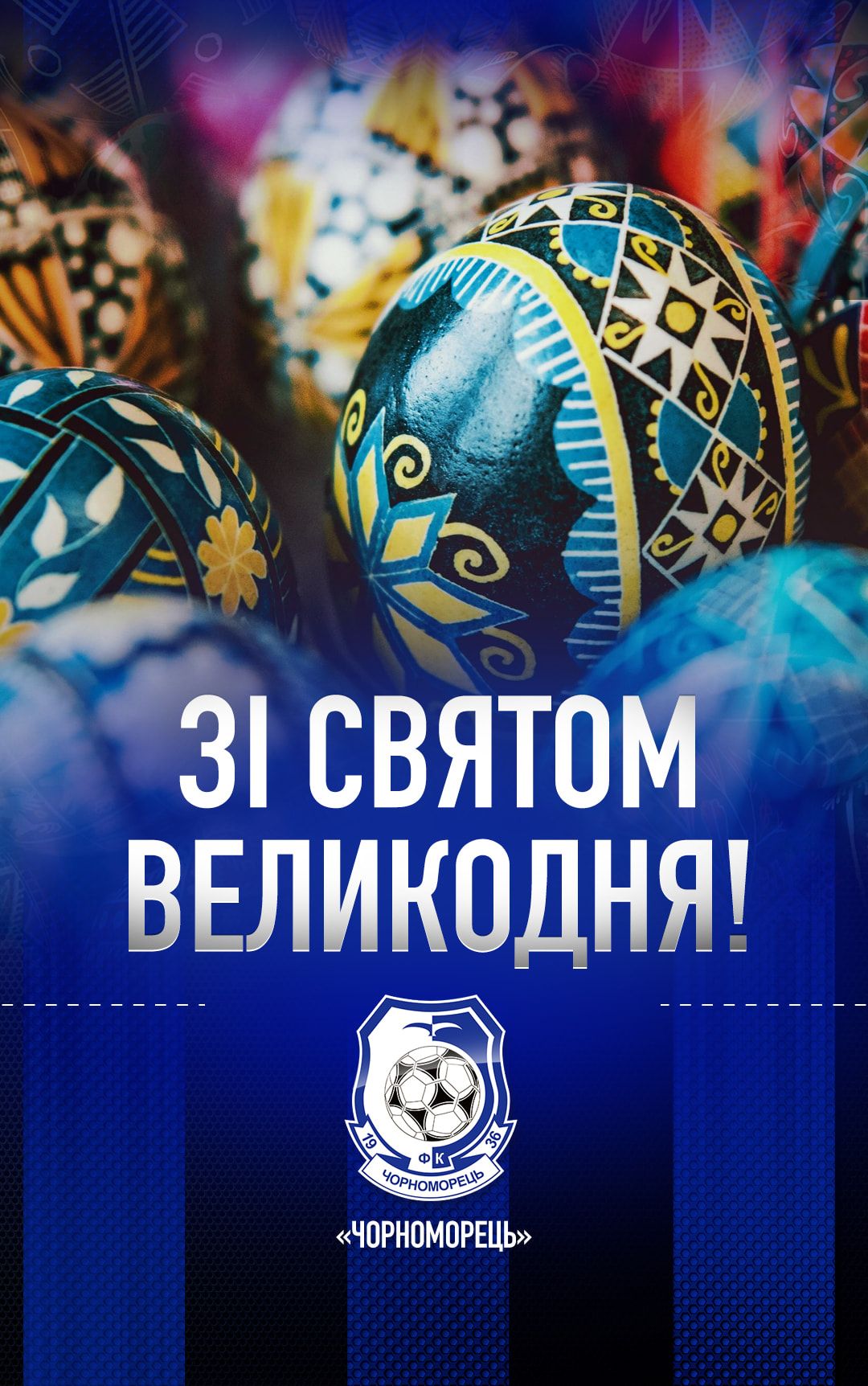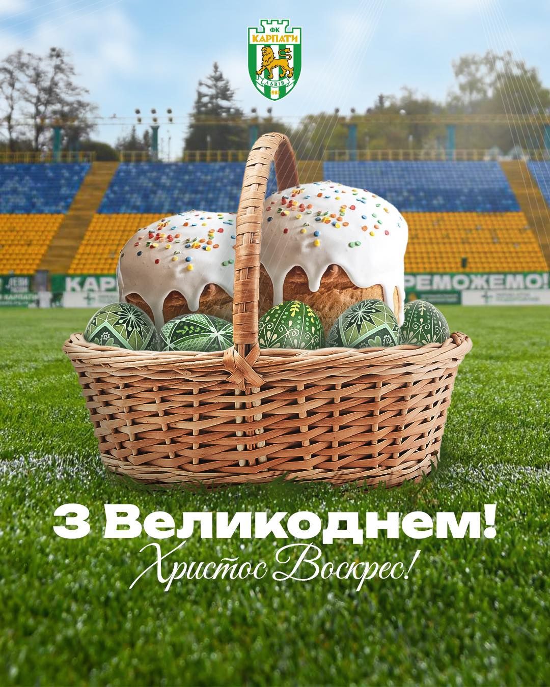 "Зелено-білі", вітаємо вас зі Світлим Христовим Воскресінням. Цьогоріч Великдень ми знову зустрічаємо у часі випробувань. Нехай у вашій оселі буде світло, панує тепло та спокій, а поруч будуть ті, кого ми любимо й ким дорожимо.