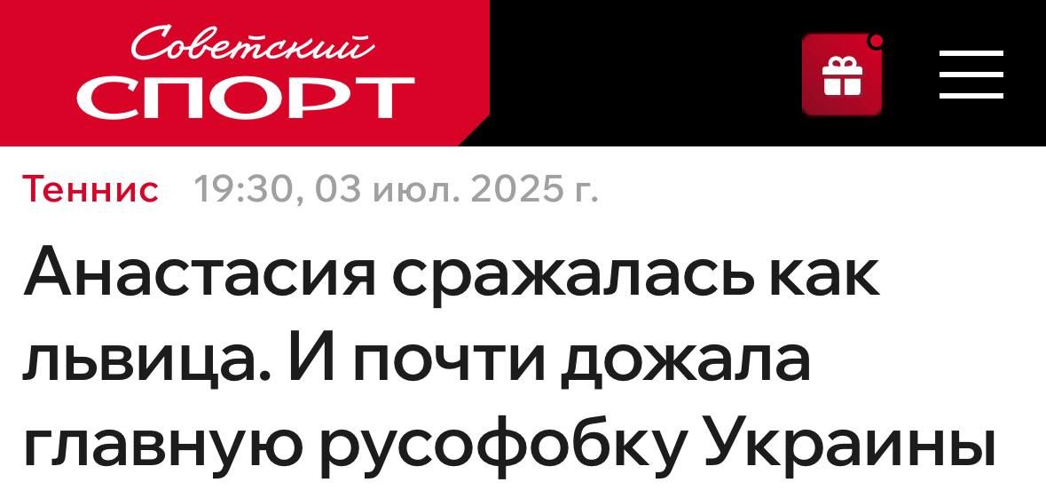 Видання "Советский спорт" відреагувало на ефектну перемогу Даяни Ястремської у матчі проти Анастасії Захарової. Авторка Оксана Фархтдінова у своєму матеріалі назвала українку "головною русофобкою України".