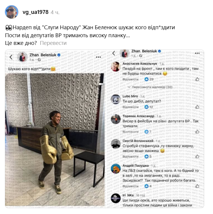 "Шукаю, кого відп**дити", – написав Беленюк.