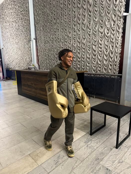 Олімпійський чемпіон опублікував фото, де він одягнений у величезні боксерські рукавички золотистого кольору. Підпис під світлиною влучно доповнив композицію.